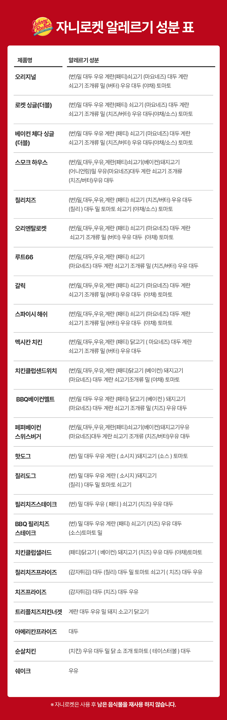 자니로켓 알레르기 성분 표